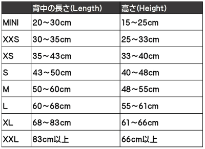 サイズは背中の長さを計測するだけ。