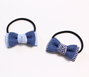 【メール便送料120円】キッズヘアゴム/さわやか デニム チェック柄 子供 ヘアゴム ki80☆青/水色 通学 通園 結婚式 発表会 女児ヘアアクセ 髪飾り お呼ばれ パーティー 女の子 七五三 入学式 卒園式 入園式【あす楽対応】【リボン】